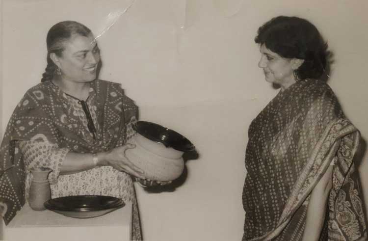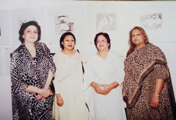 It is a delight perusing Chawkandi’s extraordinary archive— yellowing newspaper and magazine clippings, photographs and invitation cards ‘Chawkandi Art takes great pleasure in inviting you to an exhibition of latest ten paintings by Bashir Mirza.” A smiling Shahid Sajjad amidst his graceful sculptures, Summaya Durrani’s menacing flowers on the wall, a girlish Sheherezade Alam showing a pot to Zohra in her chundri sari. Even PIA once sponsored art exhibitions. And then Zohra herself— her memory is a marvel. She seems to know everyone, and their grandparents too, lacing anecdotes with Urdu literature and poetry.