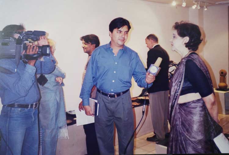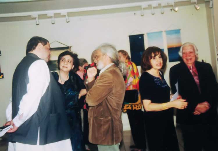 The calendar was packed with landmark exhibitions, Colin David’s 1992 show featured two figurative nudes, his first public display after a period of cultural censorship. For Zahoor ul Akhlaq’s solo, the paintings were finished so late he brought them to the gallery unframed, Shahid Sajjad spent the night in the gallery, cutting and welding metal as sparks flew, to help hang the show. The next day television crews and guests were at the opening, but the two artists slept through it.