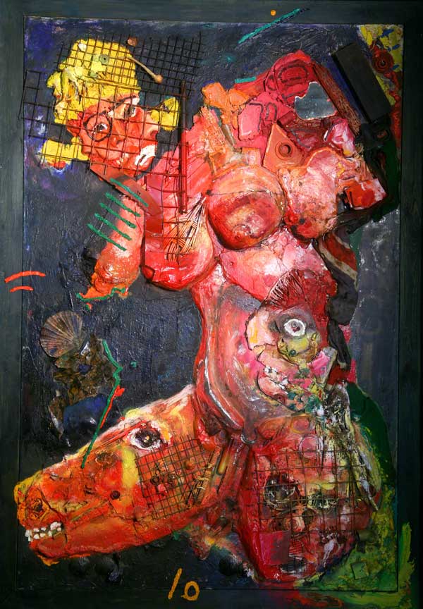 Akin to the concept of Mother India, exists Mother Wales, but unlike the all-consuming Mother India, the idea of Mother Wales signifies a devastated icon. Mother Wales is a symbol of resistance and struggle, a reminder of the atrocities committed to Wales. A bright and visceral mixed media painting by Welsh artist and member of the artist group Beca, Paul Davies ‘depicts the ravaged body of a woman and includes iconic Welsh imagery, for instance the Mari Lwyd, and on the Wales/ England border a hint of the Union Flag is seen. This political artwork is an illustration of the issues Wales has confronted and is still confronting.’ (Barry Plummer, Bloomberg Connects). This piece references the Rebecca Rioters of 1839-43, a significant historic Welsh group that rebelled against the English and the taxes they imposed on the already struggling Welsh farmers.